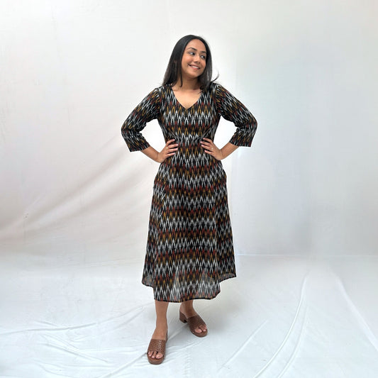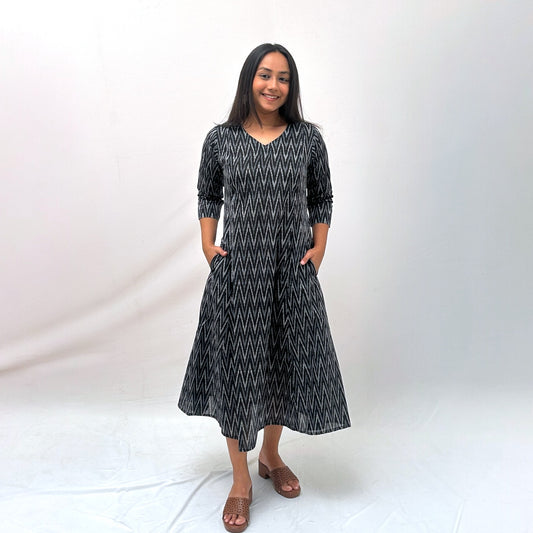 Mercerised Ikkat Black Handloom Dress