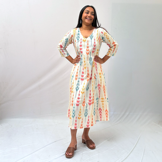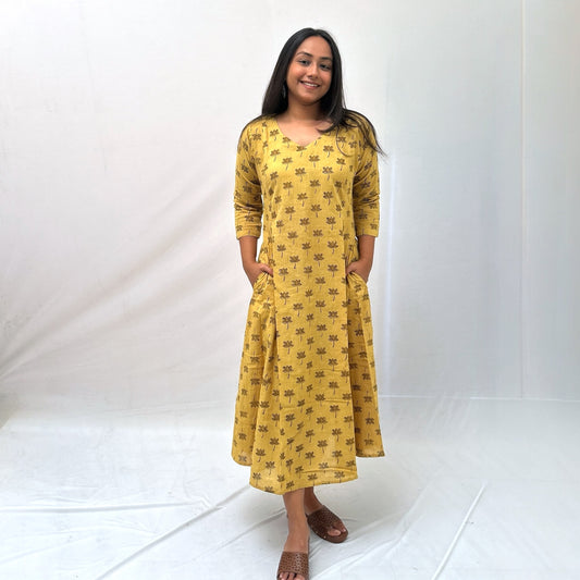 Mercerised Ikkat Yellow Handloom Dress
