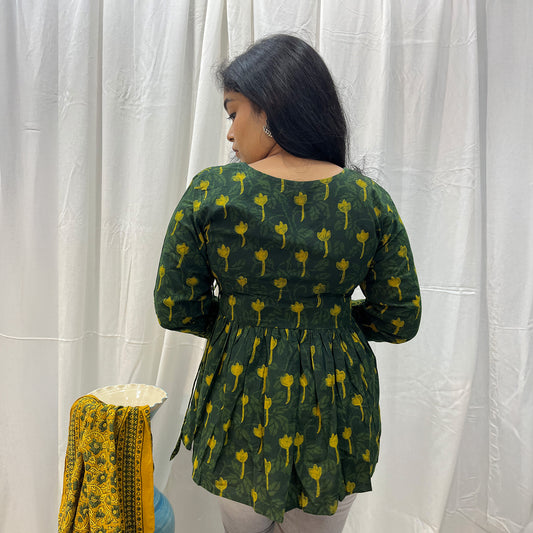 Green Dabu Slub Floral Hand Block Printed Tunic