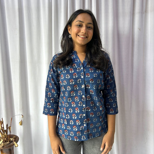 Dabu Blue Floral Hand Block Printed Tunic