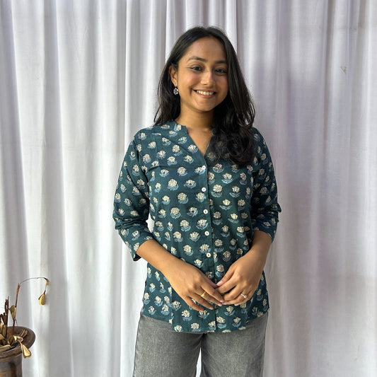 Dabu Green Floral Hand Block Printed Tunic