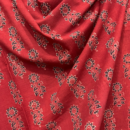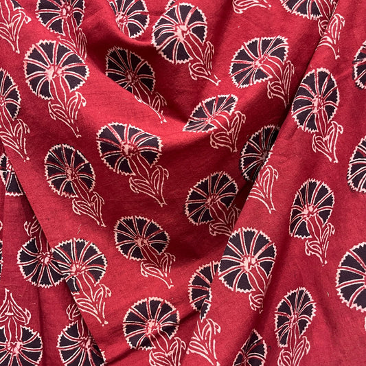 Vegetable Red Floral Hand Block Printed Fabric