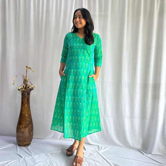 Green Dabu Slub Floral Hand Block Printed Tunic