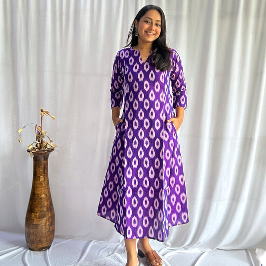 Blue Dabu Slub Floral Hand Block Printed Tunic