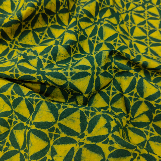 Dabu Green Geometric Hand Block Printed Fabric