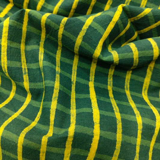 Dabu Green Lining Hand Block Printed Fabric