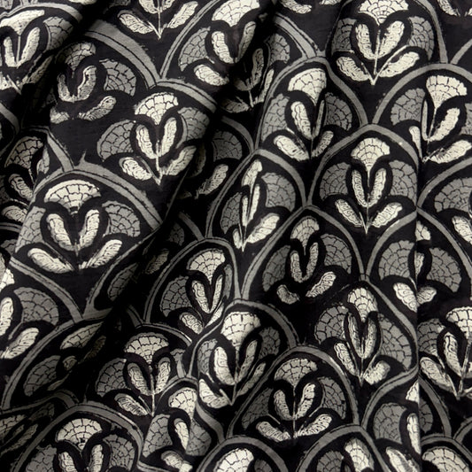 Bagru Black Floral Hand Block Printed Fabric