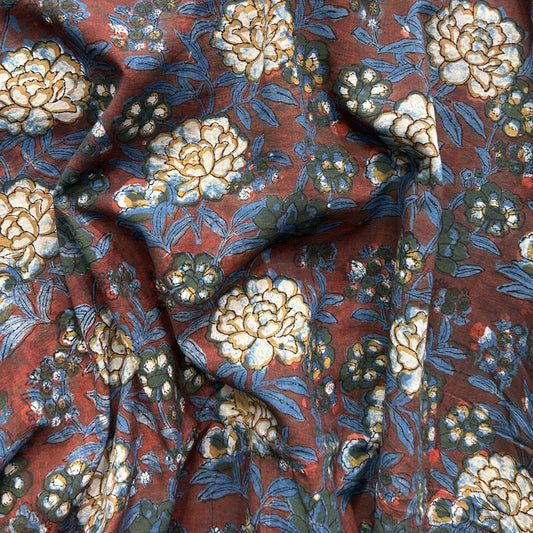 Dabu Brown Floral Hand Block Printed Fabric