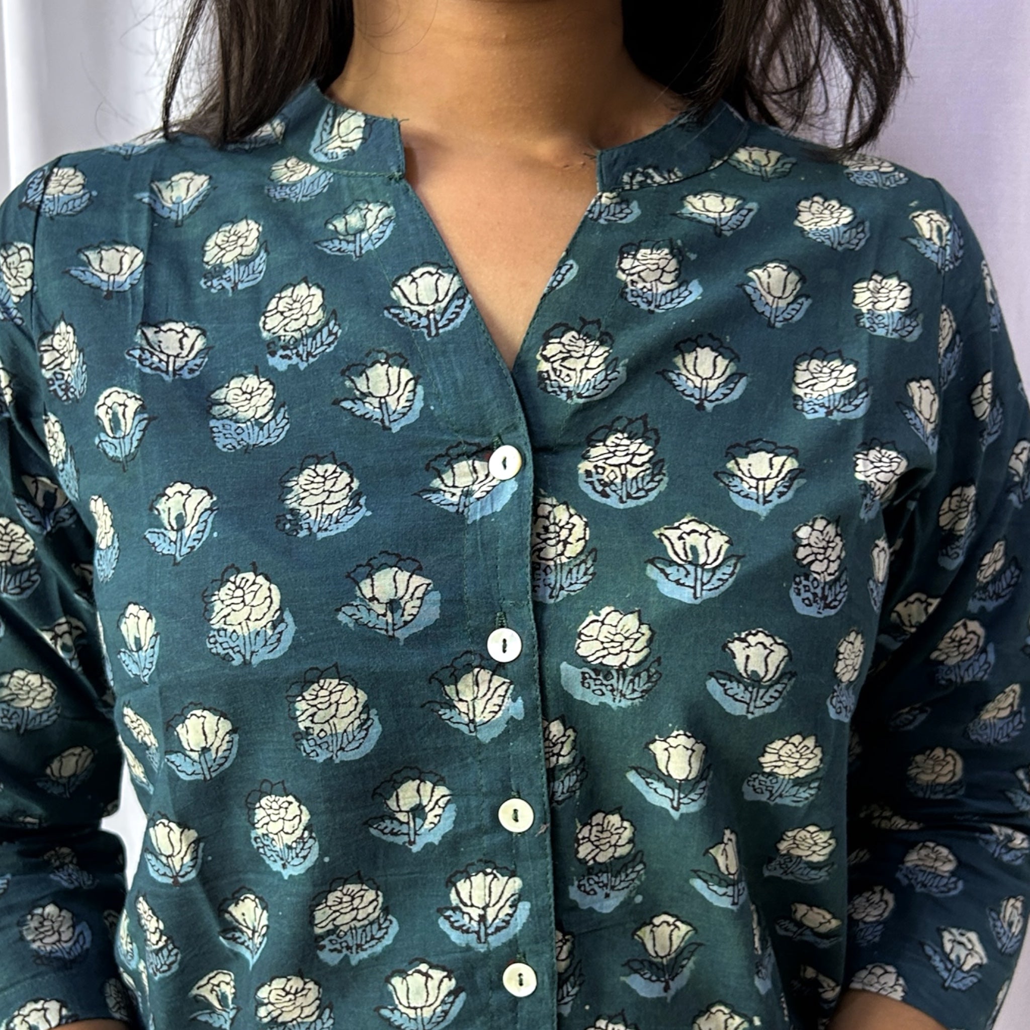 Dabu Green Floral Hand Block Printed Tunic
