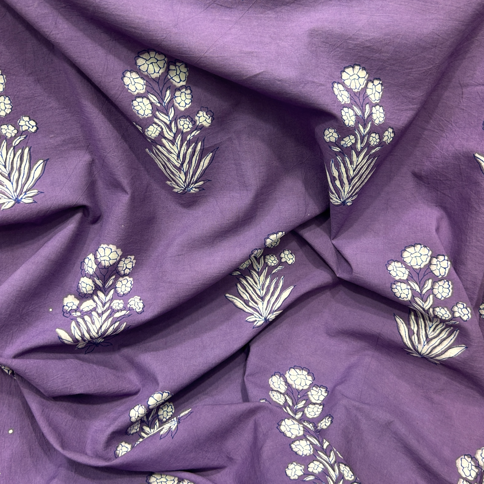 Dabu Light Purple Floral Hand Block Printed Fabric