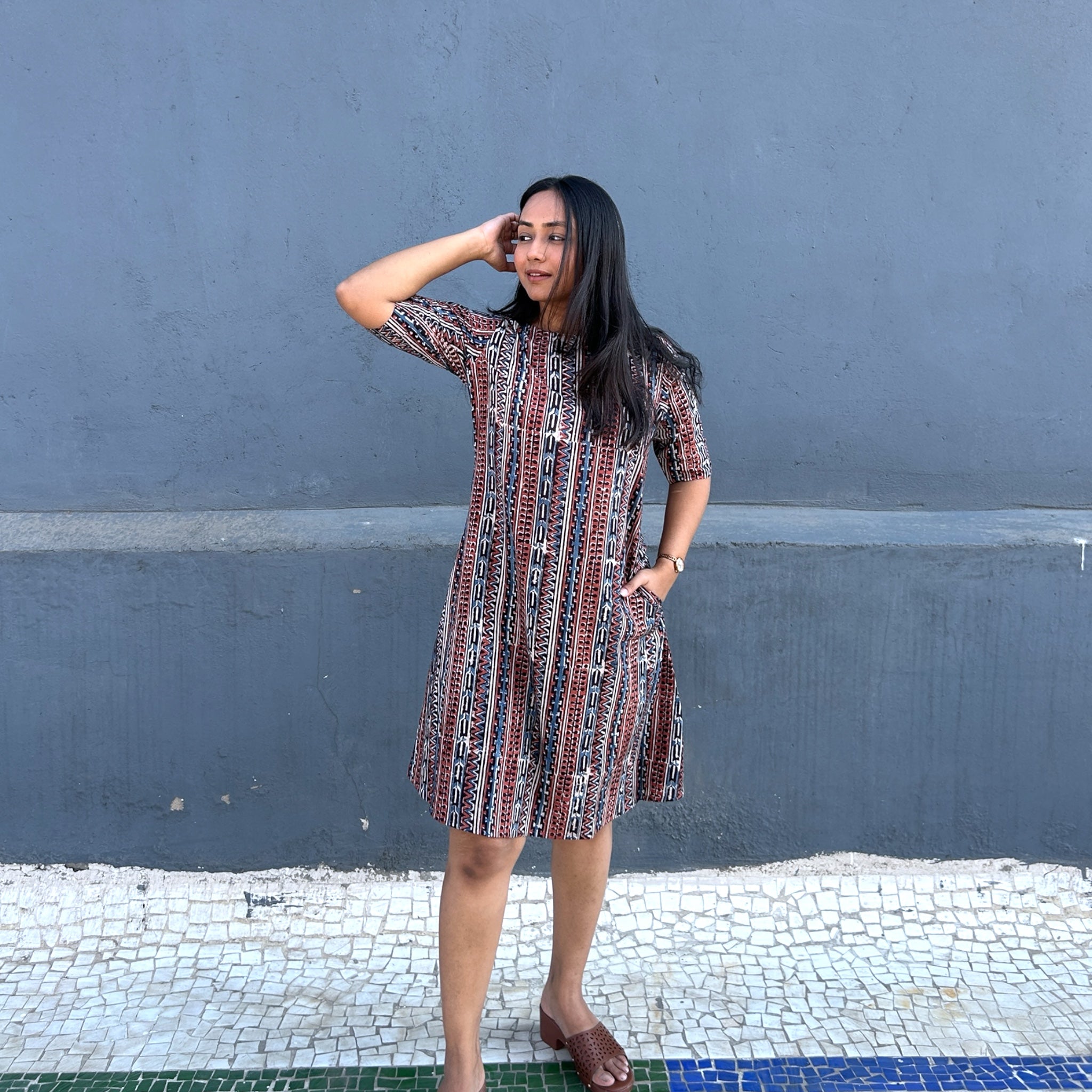 Kalamkari Multicolour Geometric Hand Block Printed Short Dress