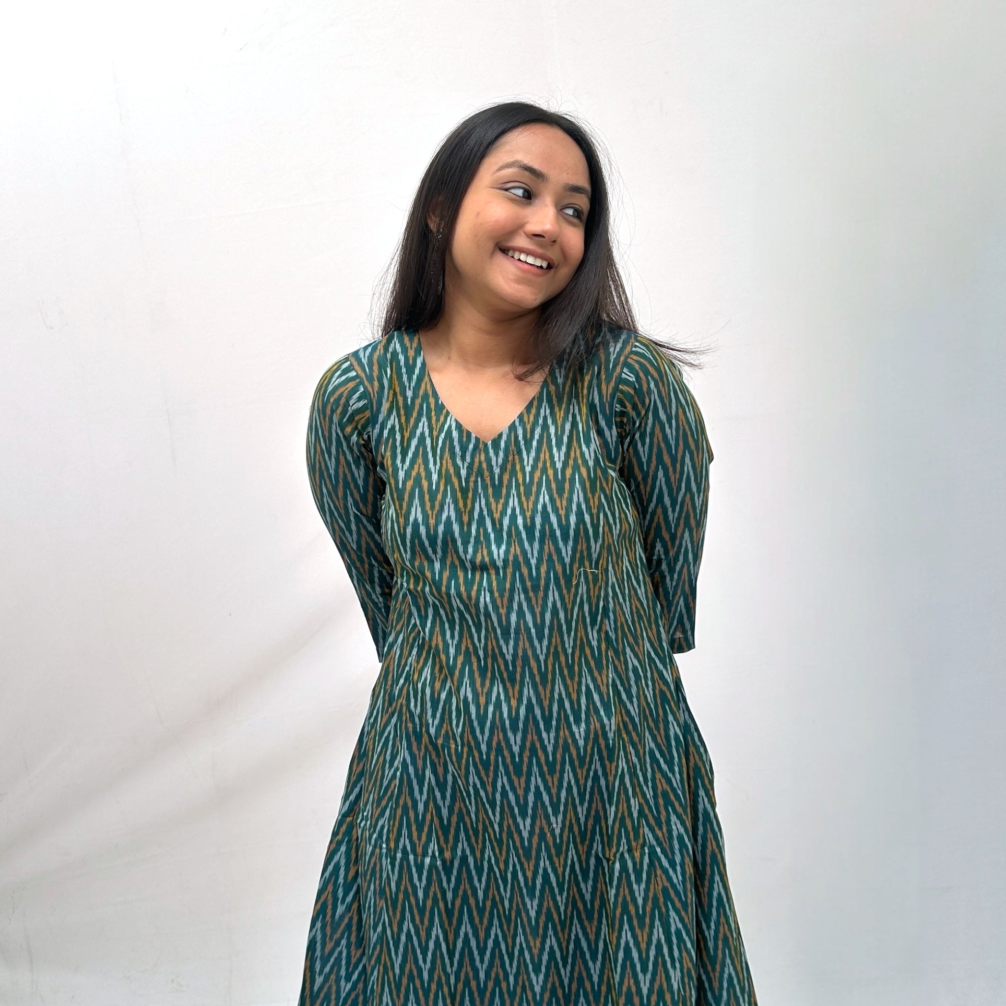 Mercerised Ikkat Green Handloom Dress