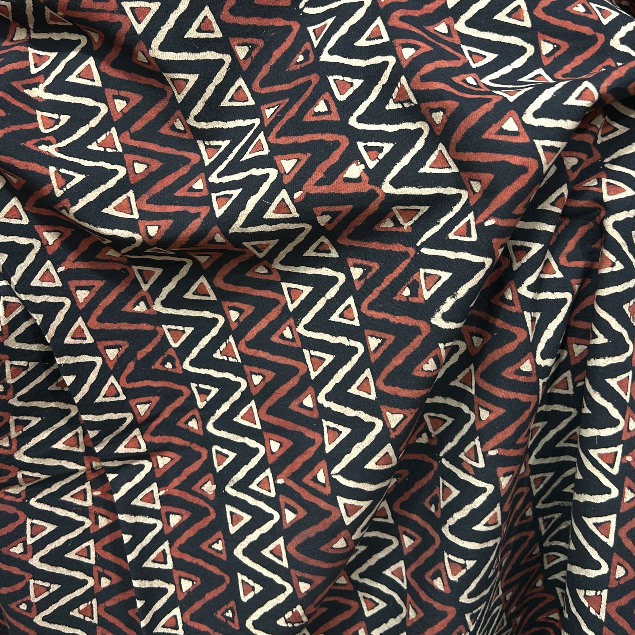Vegetable Black Geometric Hand Block Printed Fabric