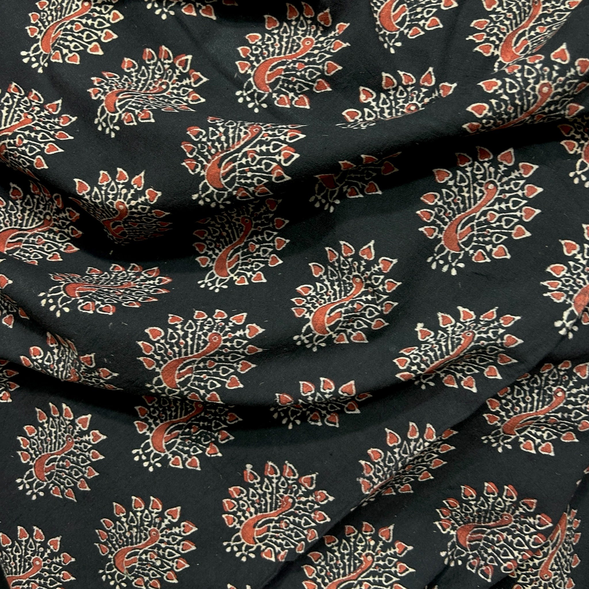 Vegetable Black Peacock Motif Hand Block Printed Fabric